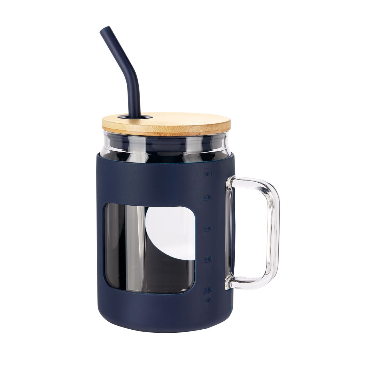 | Nombre del producto | ANF 058 A – CILINDRO DE VIDRIO MASON AZUL (AZUL / VIDRIO BOROSILICATO / SILICON / ACERO INOXIDABLE) |