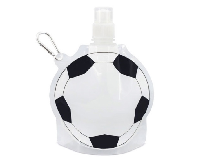 | 🏷️Descripción del producto | Bolsa para bebidas con diseño de balón de fútbol, con tapa de rosca y válvula con tapón, incluye arnés metálico para colgar. CAP. 800 ml. |
