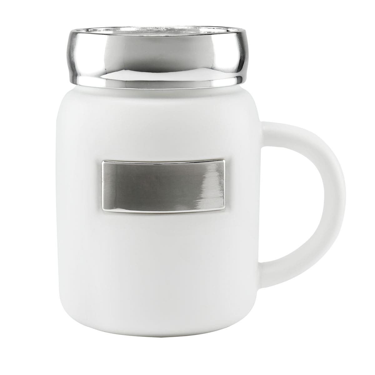 | 🏷️Descripción del producto | Taza tarro de ceramica con placa metalica para impresion. Tapa de rosca de plastico con recubrimiento metalizado. Terminado mate. Incluye caja individual. |