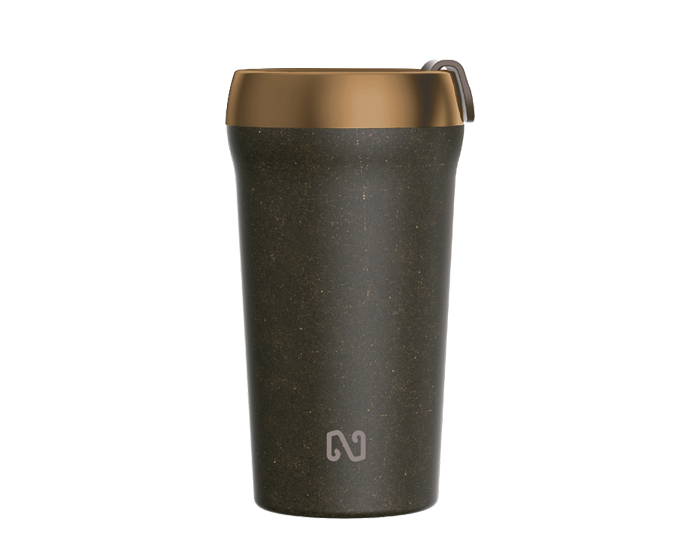 Termo NAYAD NEO de 16 Oz. de doble pared, la interna es de acero inoxidable y externa de granos de café reciclado. Mantiene bebidas calientes por 3 hrs. y bebidas frías 5 hrs. En la parte superior tiene un cintillo metálico color bronce. Cuenta con tapa a presión con seguro giratorio, previendo salpicaduras. CAP. 414 ml. (14 OZ). Presentación: Caja de color. *Libre de BPA.