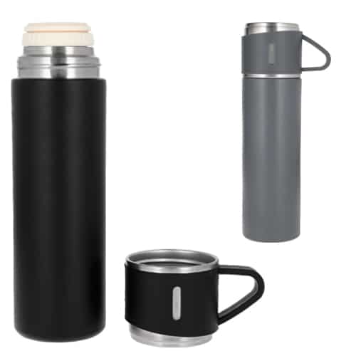 | 🏷️Descripción del producto | Termo con doble pared de acero inoxidable insulado al vacío. Acabado rugoso y tapa de rosca con asa que se utiliza como taza. |