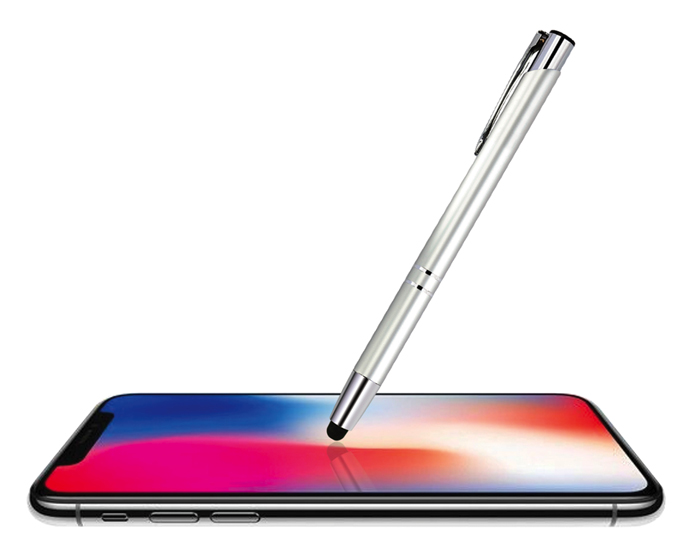🏷️Descripción del producto Bolígrafo delgado de aluminio, con punta cromada y punta touch para pantallas táctiles. Mecanismo de click.