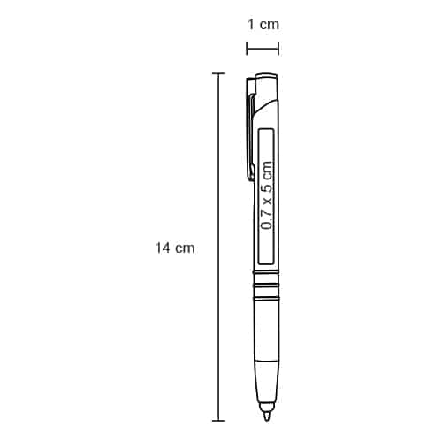 | 🏷️Descripción del producto | Bolígrafo metálico con goma touch screen en la punta, clip y mecanismo de click. |