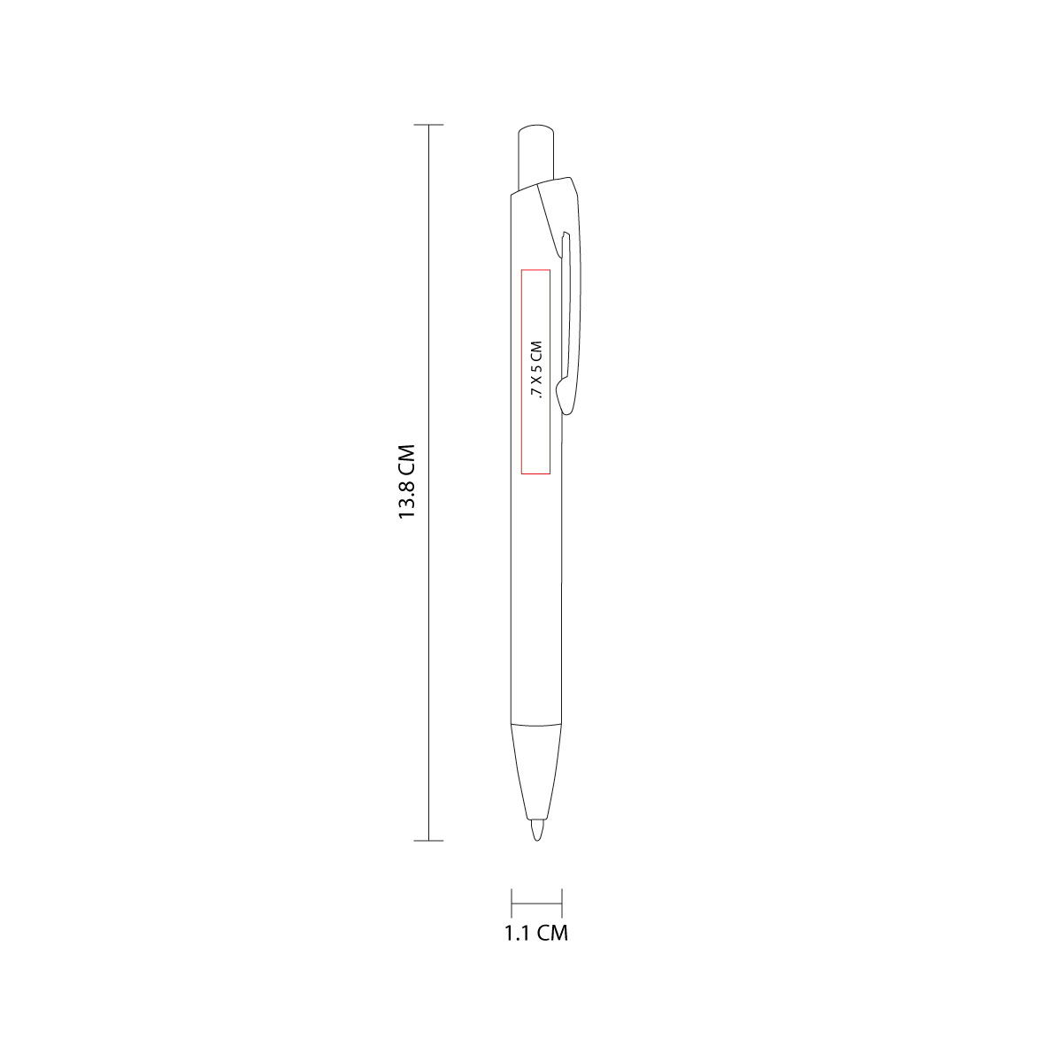 | 🏷️Descripción del producto | Boligrafo metalico con terminado tipo rubber. Boton, clip y punta en rose gold. Mecanismo pulsador. Incluye funda. |