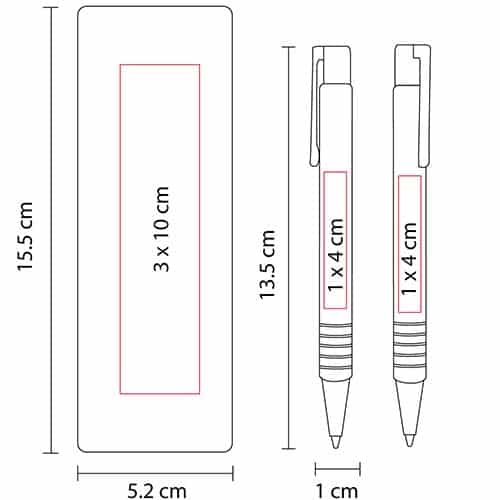 | Medidas del producto | 1 x 13.5 cm Bolígrafo / 5.2 x 15.5 cm Estuche 👉Clic para ver vectores |