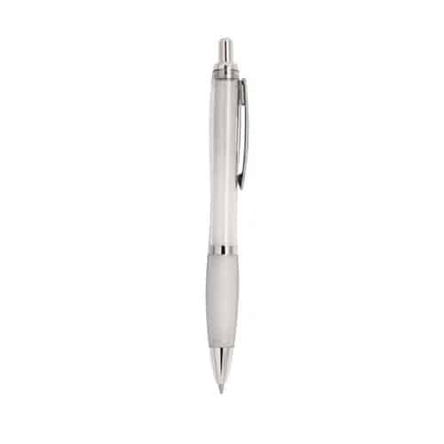 | 🏷️Descripción del producto | Bolígrafo de plástico traslúcido con clip metálico y grip de goma. |
