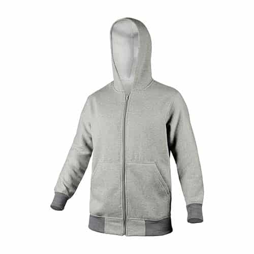 🏷️Descripción del producto Sudadera con gorro, cierre en medio y bolsas frontales. Composicion: Algodon 65%, poliester 35%.