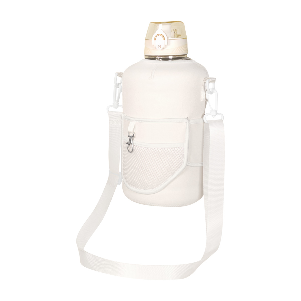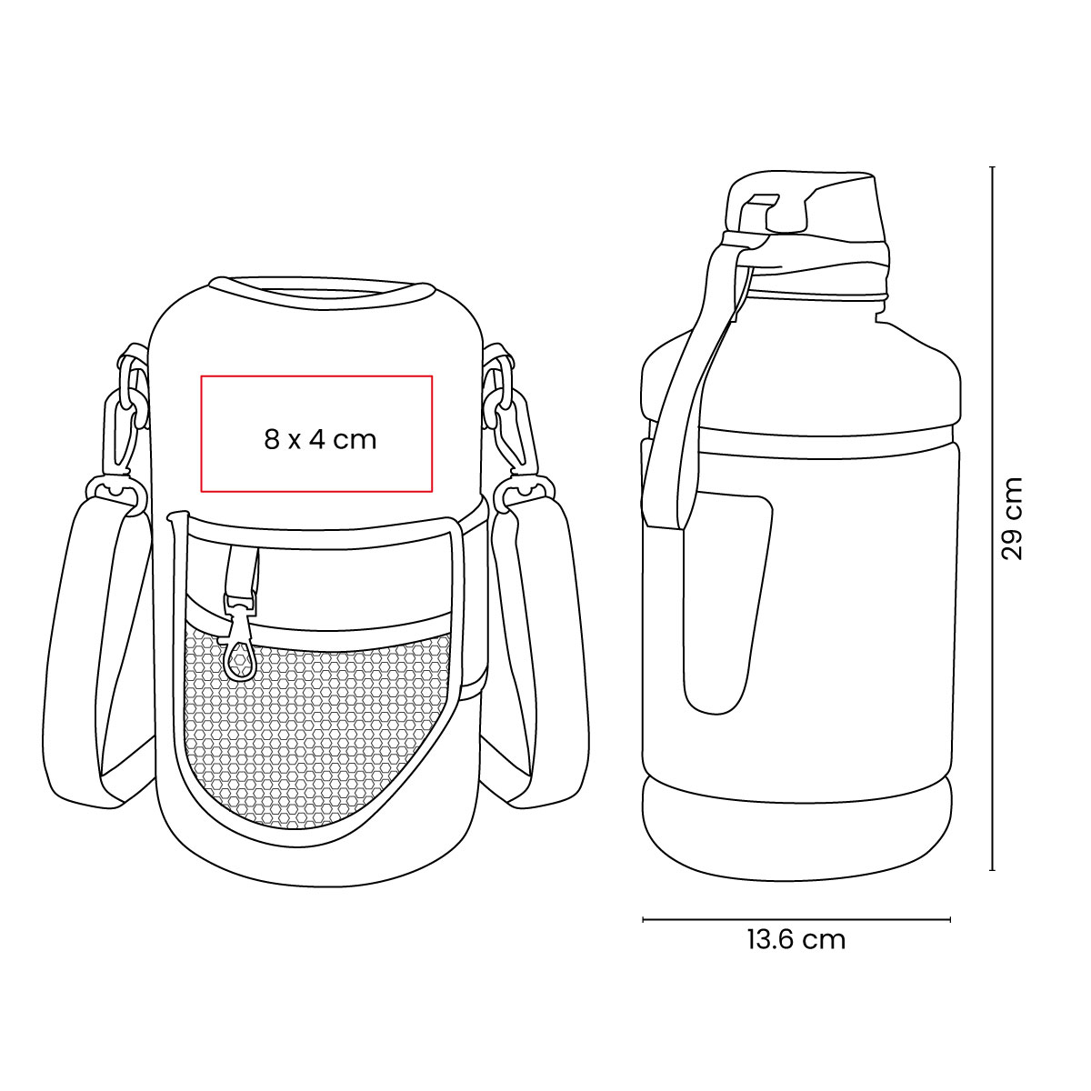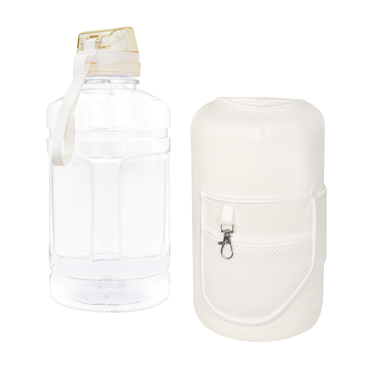 | 🏷️Descripción del producto | Cilindro con pared sencilla de plastico. Incluye funda removible de neopreno. Tapa de plastico con sistema de rosca y sobretapa que agrega un clip de seguridad para evitar derrames. Su tamano esta disenado para quienes necesitan llevar una gran cantidad de agua de manera practica, es perfecto para actividades intensas, largas jornadas o aventuras al aire libre, asegurando que nunca te falte agua. Los bolsillos de su funda, te permiten organizar tus articulos esenciales y no perderlos de vista mientras te ejercitas y su correa ajustable lo hace ideal para llevarlo contigo sin mayor esfuerzo. |