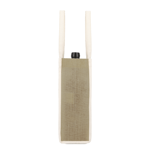 - Descripción: Bolsa para vino de yute con asas de algodón.