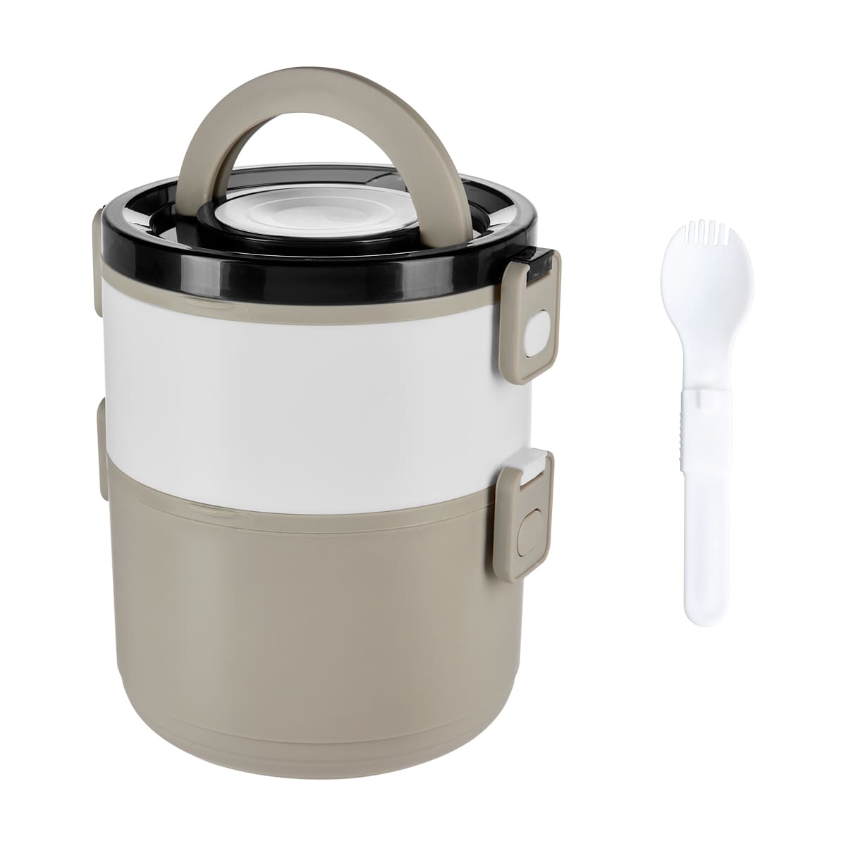 | 🏷️Descripción del producto | Contenedor de alimentos con dos pisos independientes que permite separar tus alimentos y no mezclar sabores. Fabricado con una pared sencilla de plastico, ideal para el uso de microondas. Cada compartimento cuenta con su tapa hermetica para evitar derrames y sus broches laterales ayudan unir o separar cada elemento. Incluye cuchara de plastico, tapa con asa plegable y caja individual. Apto para el uso en microondas y lavavajillas. |