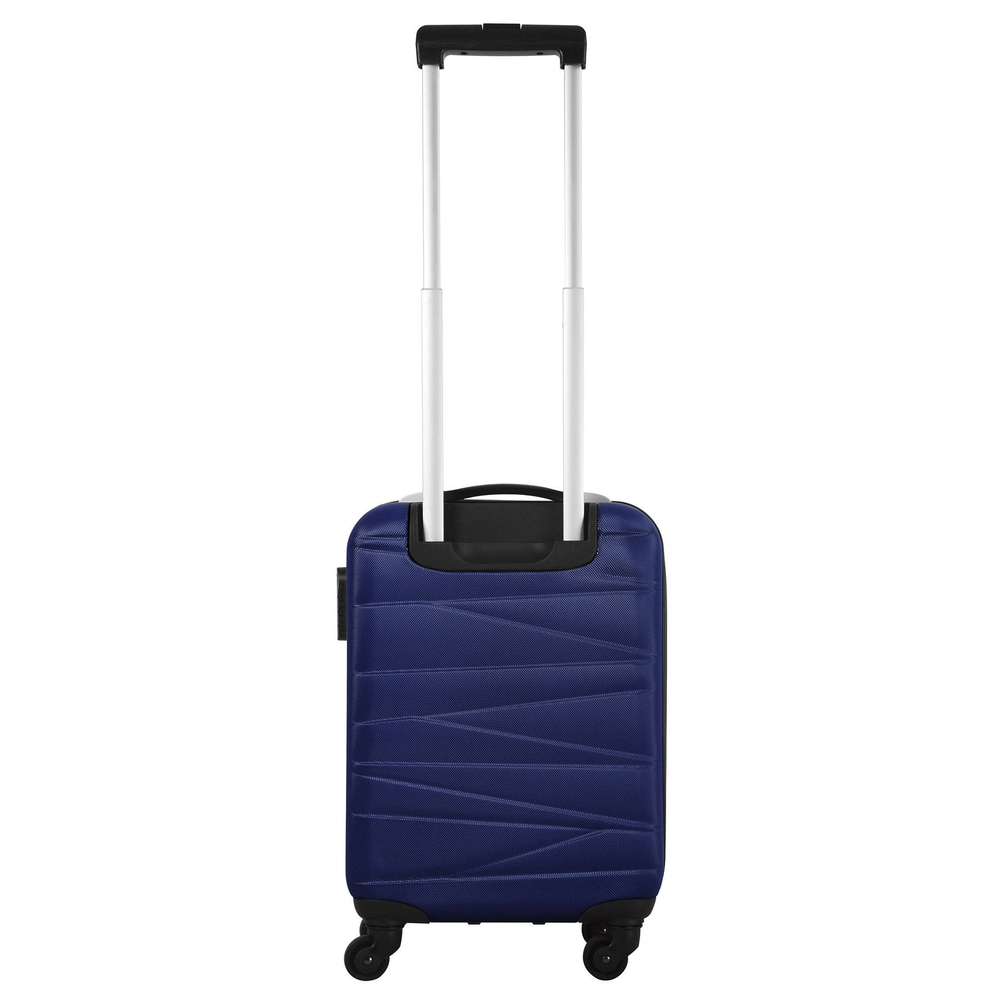 34 x 54 x 20 cm. (total). Capacidad 31 litros. ABS. Valija / Maleta pequeña. 4 ruedas con giro 360°. Manija de transporte reforzada. Mango extensible hasta 54 cm. 2 posiciones. Interior: 2 compartimentos principales con cierre y elásticos ajustables. Placa metálica desmontable para grabado (medida: 6 x 4 cm.) Candado incluido con combinación.