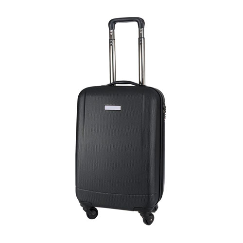 Maleta trolley con 4 ruedas. Incluye 4 compartimentos interiores, placa metalica removible para facil grabado y candado de seguridad TSA con combinacion de 3 digitos. Asa de agarre superior.