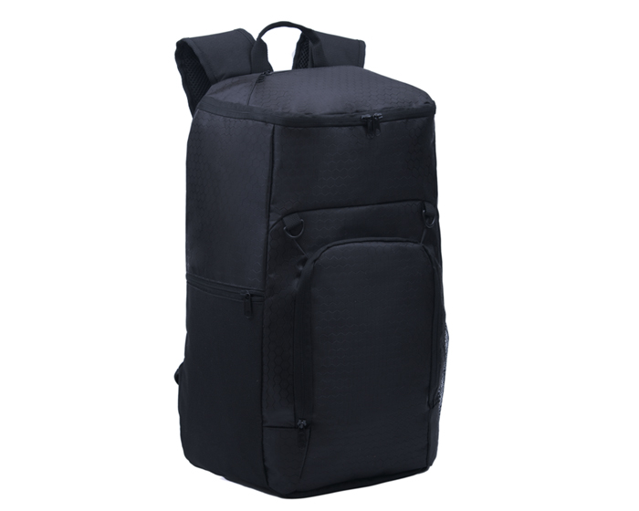 Mochila tipo back pack con compartimiento principal amplio, parte exterior que funciona como zapatera, bolsa inferior con malla desmontable que sirve para colocar balones se ajusta con las argollas exteriores. Compartimento en la parte superior para guardar accesorios y salida para audífonos. Bolsa lateral de malla. Correas acolchadas ajustables y asa superior.