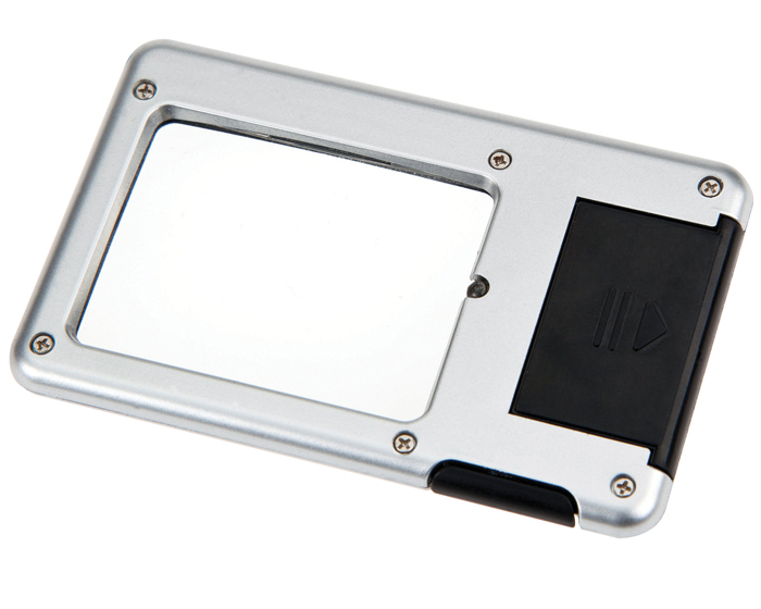 Lupa con pluma y botón para encendido de luz. Batería incluida. Presentación: caja en color blanco.