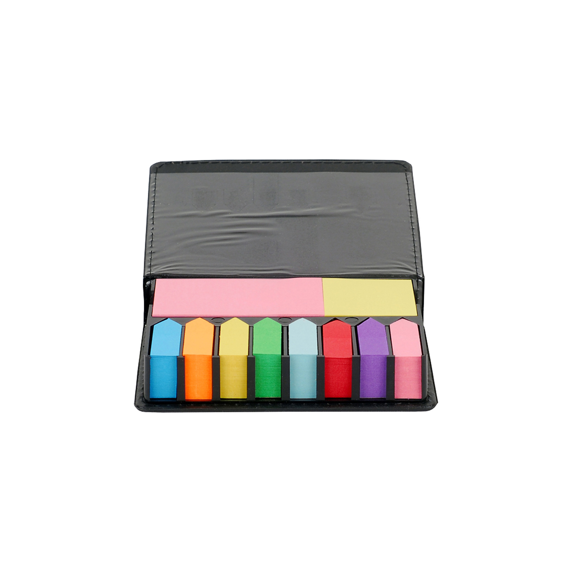 | 🏷️Descripción del producto | 12,6 x 2,8 x 10,5 cm. Curpiel negra. 8 Blocs autoadhesivos de diferente color en forma de flecha. 2 Blocs autoadhesivos rectangulares de diferente color. 2 Blocs autodhesivos cuadrados de diferente color. |