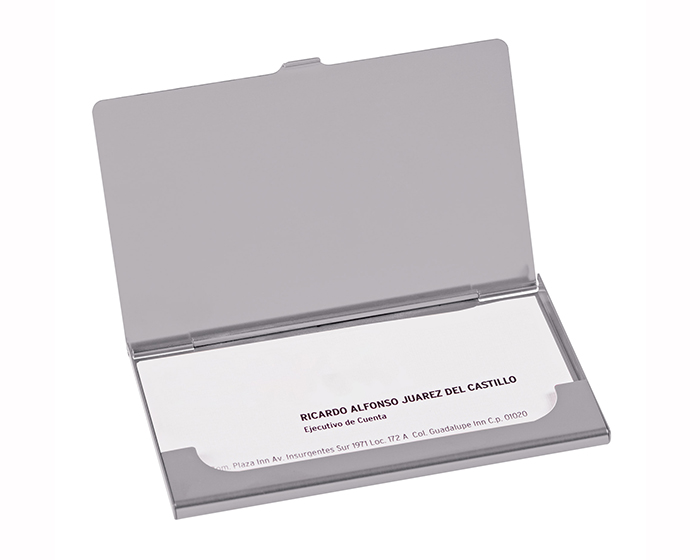 | 🏷️Descripción del producto | Tarjetero de aluminio con acabado liso y cierre de presión. Capacidad 12 tarjetas. Presentación: caja en color blanco. |