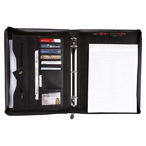 | 🏷️Descripción del producto | Carpeta portafolio con block de raya tamano A4 con 20 hojas. Incluye compartimento para boligrafo, tarjetas y pasaporte. Arillo de 1.25 pulgadas. No incluye boligrafo. |