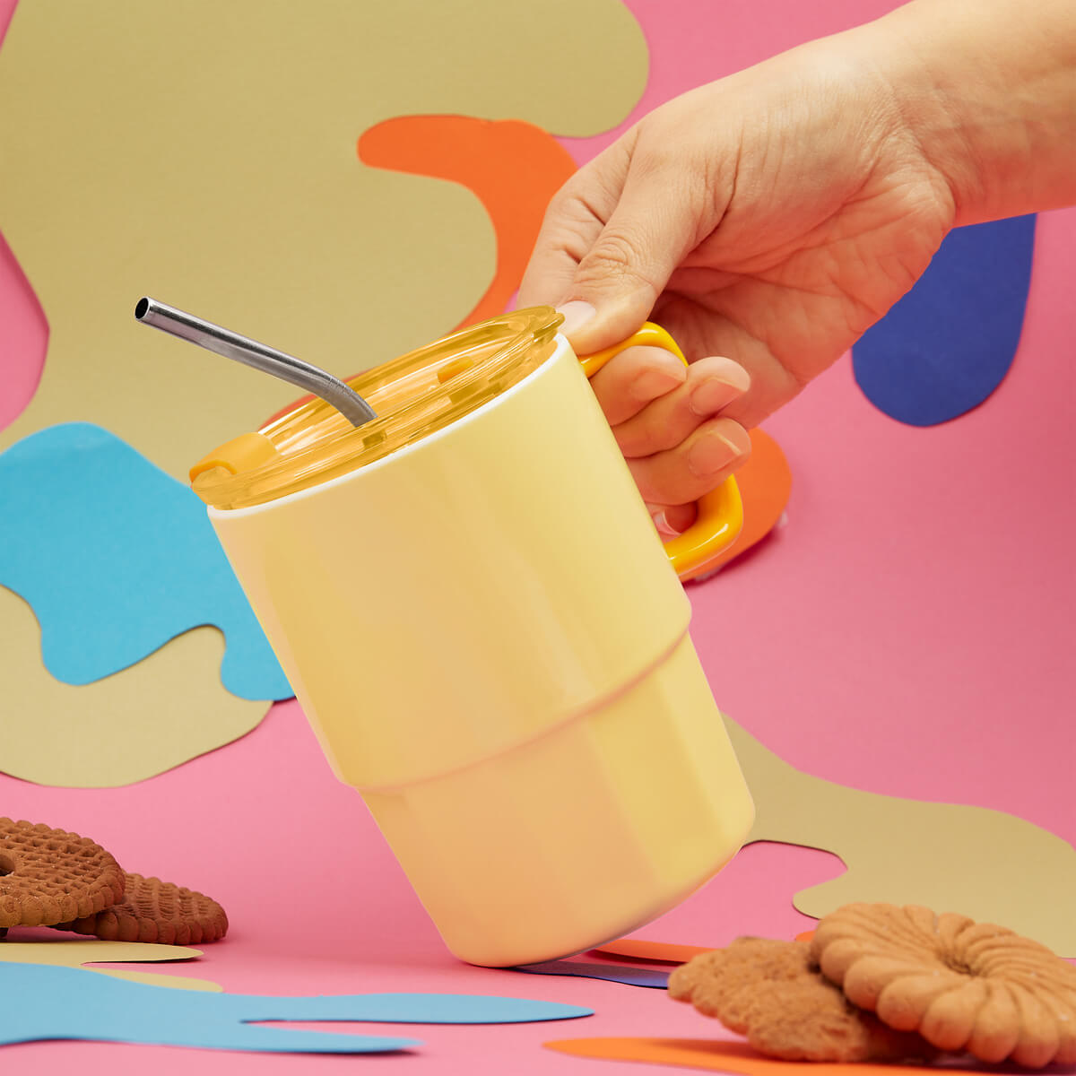 | Nombre del producto | TAZ 067 Y – TAZA CORALINE AMARILLO (AMARILLO / CERAMICA / PLASTICO / ACERO INOXIDABLE) |