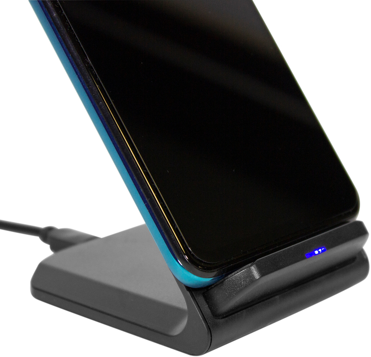 7 x 7,5 x 10,5 cm. Plástico ABS. Cargador USB de carga rápida inalámbrica para telefono móvil. Apoyando el celular comienza a cargar la bateria. Puede cargarse tanto en posicion horizontal como vertical gracias a la doble bateria de 10w c/u. Incluye cable de conexión USB de 60cm de largo. Presentación en caja de regalo.Compatible exclusivamente con celulares que permitan carga inalámbrica (tecnología qi).Voltaje de Entrada : 9V/2A
