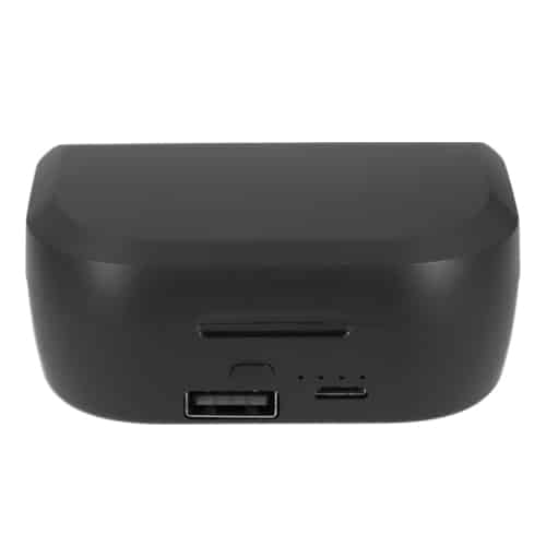 | 🏷️Descripción del producto | Audífonos Bluetooth con botón de encendido y apagado, mecanismo touch y estuche de plástico para carga, con power bank integrada y gomas de repuesto. |