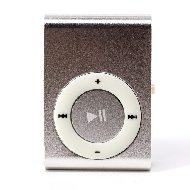 Reproductor MP3 con pinza ajustable.