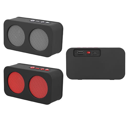 | 🏷️Descripción del producto | Bocina portátil de acabado rubber con Bluetooth, entrada SD, USB, radio FM y botones de color en contraste. Batería recargable con duración de 2-3 hrs. |