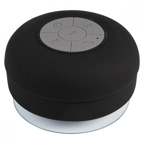 Bocina bluetooth con bateria recargable. Resistente a salpicaduras de agua. Ventosa de fuerte fijacion para superficies lisas. Reproduccion de musica 6 hrs aproximadamente. Funcion manos libres. Controles de volumen, reproduccion de audio y microfono. Incluye cable cargador USB.