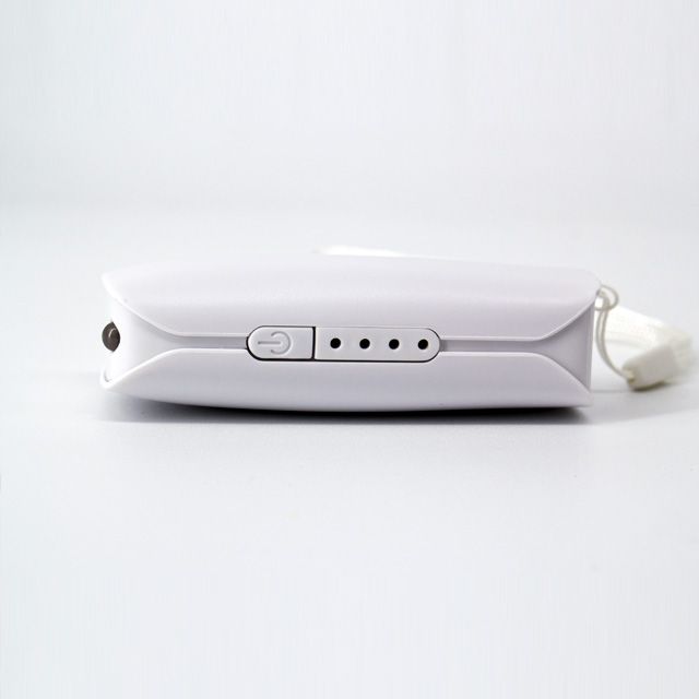 Power Bank OVALADA MINI, cuenta con lámpara LED y cordón para fácil transportación.
