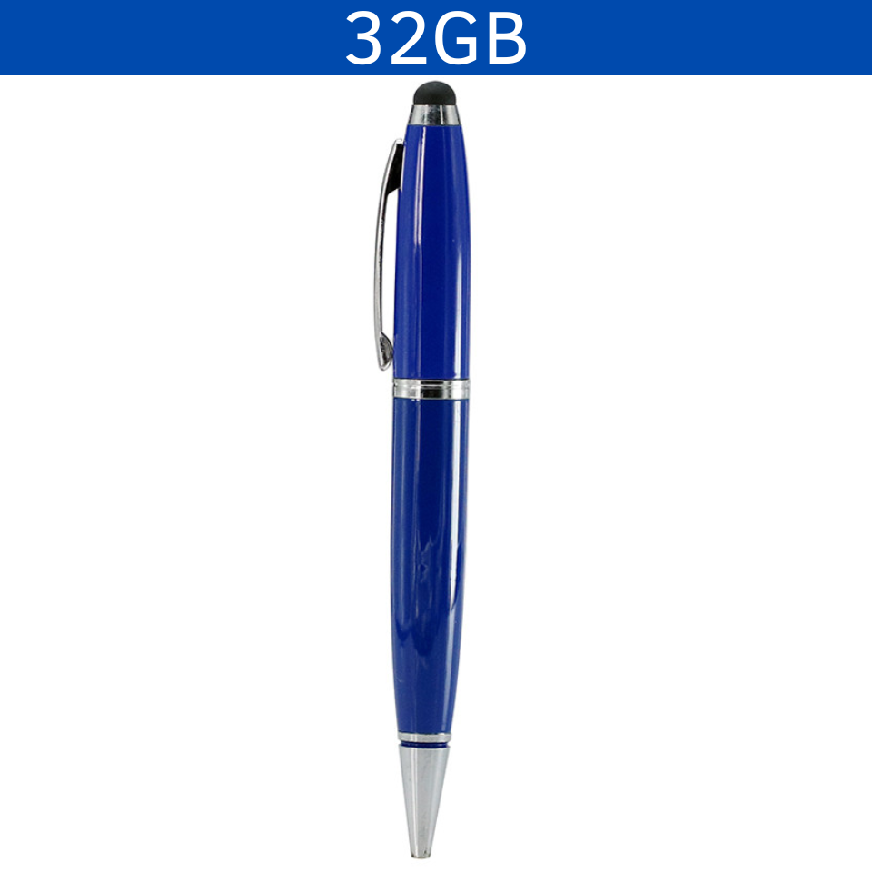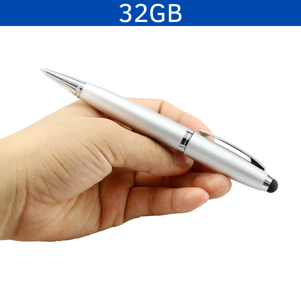 Memoria USB multifuncional con bolígrafo tinta negra y cuerpo de metal, cuenta con puntero táctil de silicona que evita rayones en dispositivos touchscreen.